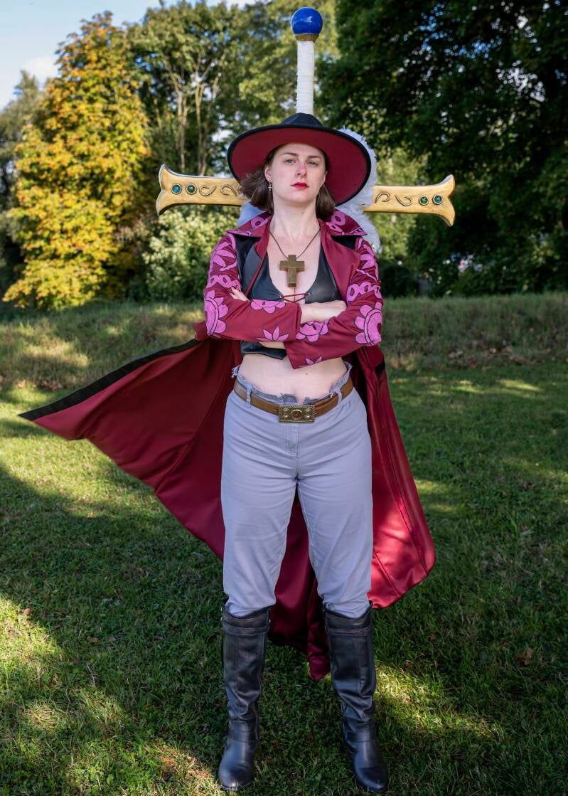 The next day I decided on Mihawk because I thought he would fit well in the village too, plus Mihawk is just a super nice costume wit the long coat and feathery hat. I brought Yoru too (unfortunately he didn't make it for the third shoot) and my mum because the weather was super nice again and she was good with a day out and about. Again, super well organized with three great photographers and amazing settings. I found the cannons and was so excited to get a picture of Mihawk with an actual cannon!