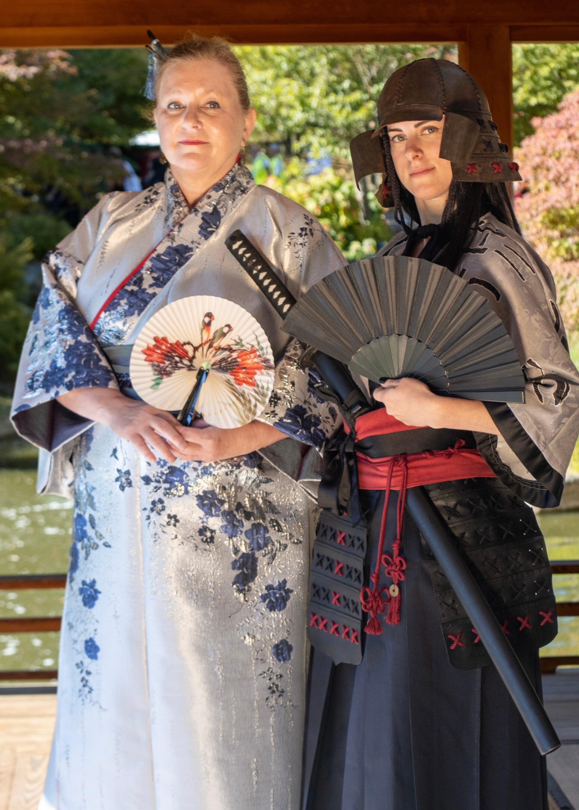 Ever since I made Suki I had the idea of making another Onna-Bugeisha, a female samurai, in tones of grey and black. I had just over a month to crunch this costume and of course I wanted insane details like a leather oni mask and a leather kabuto helmet, so time was short and nights were long but it was so worth it to have an accurate costume for this amazing setting!