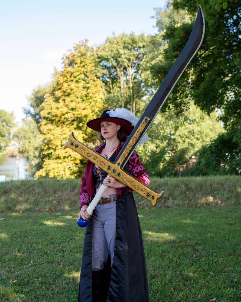 When my little brother got me hooked on One Piece, I knew there were a lot of cosplays about various characters but I didn't expect it to be THAT cosplayable! When Mihawk showed up the first time I had a connection with his jacket, my god. The upstanding collar, the sleeves, the patterns... it was so cool!
