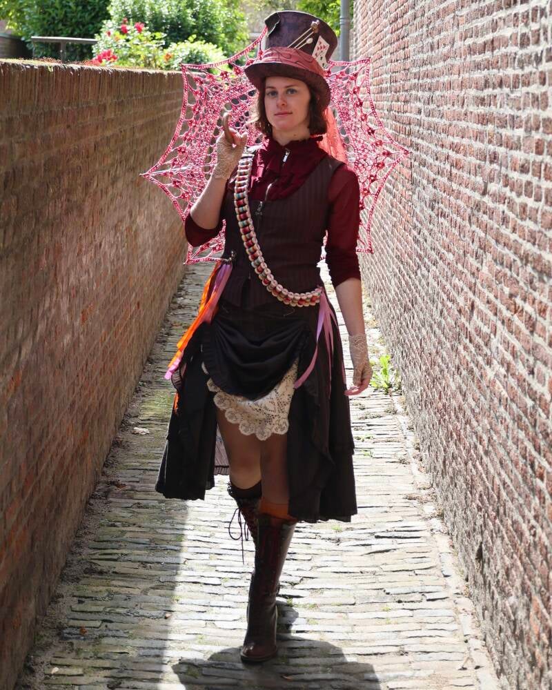 I really had a blast making this cosplay, and I love the recycled aspect of it. So much fashion gets thrown away every year and it's such a pity! Thrifting was a great way to make this cosplay and not spend a fortune on fabrics and materials. I think I spend €50,- total on everything and I'm so proud of my Mad Hatter!