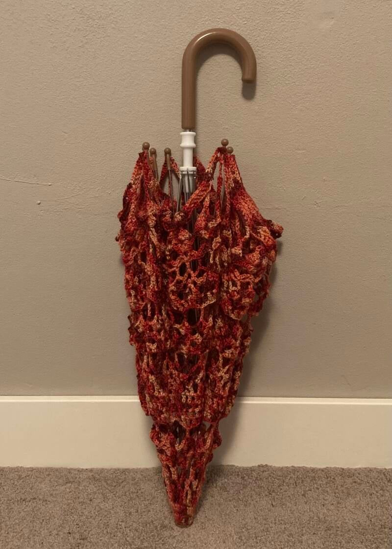 Skills I learned for this prop: crocheting an umbrella from a pattern